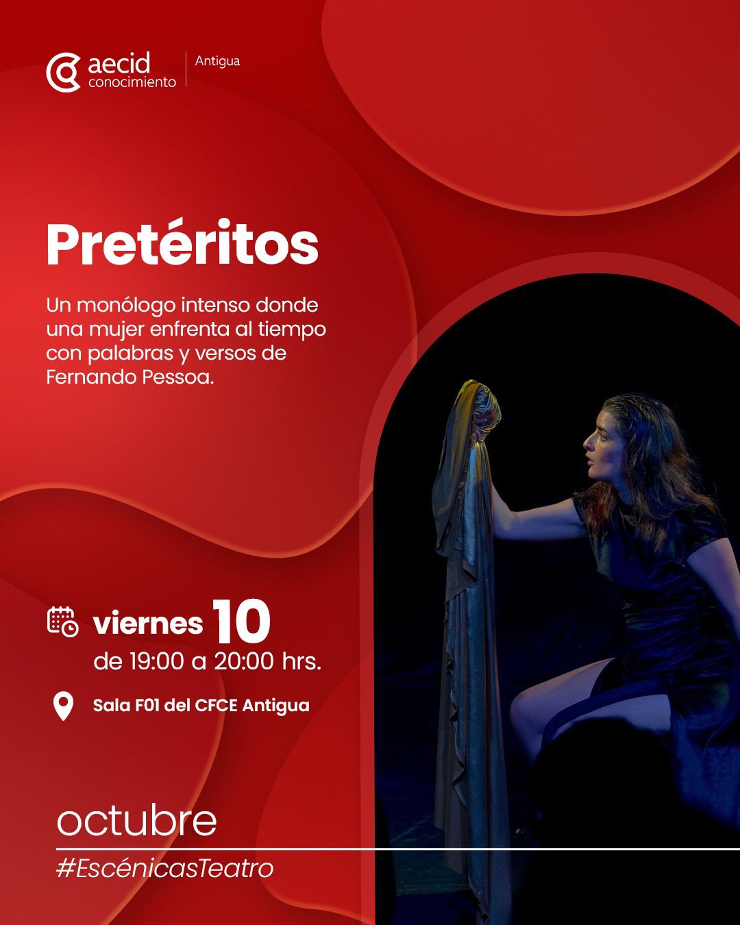Un monólogo intenso donde una mujer enfrenta al tiempo con palabras y versos de Fernando Pessoa.