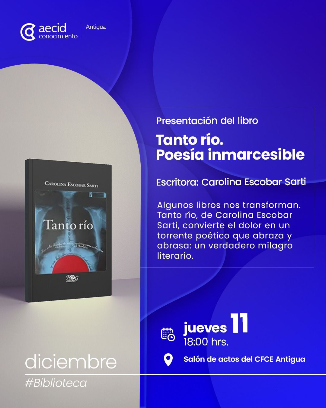 jueves 11 18:00 hrs. Salón de actos del CFCE Antigua