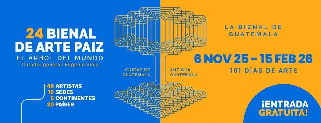 24 BIENAL DE ARTE PAIZ EL ÁRBOL DEL MUNDO - 101 DÍAS DE ARTE - 46 ARTISTAS - 10 SEDES - 5 CONTINENTES - 30 PAÍSES Curador general: Eugenio Viola 6 de noviembre 25 - 15 febrero 26 - Ciudad de Guatemala ¡ENTRADA GRATUITA!